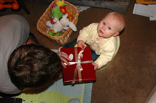 We celebrated our little family's first Christmas tonight. Charlotte received a copy of the classic Christmas story by Dickens; however, she appeared more interested in the ribbon on the package. Delicious.